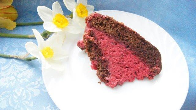 Кусочек нежного шоколадно-вишневого торта с легкой кислинкой!