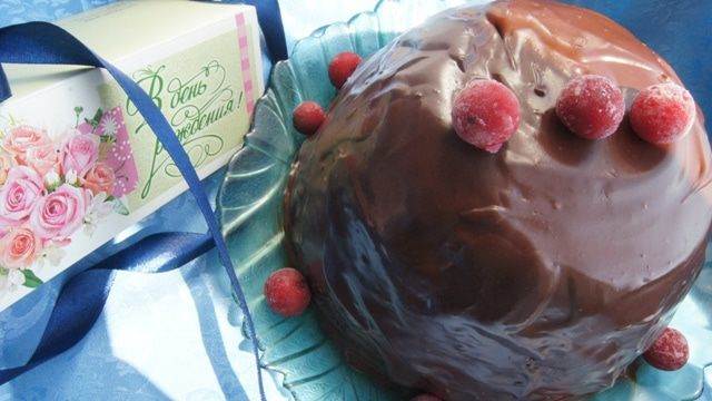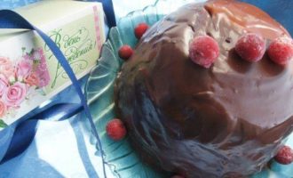 Полить теплой глазурью и оставить в холодильнике еще на час.