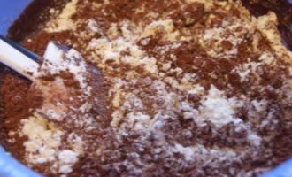 Добавить муку и какао.