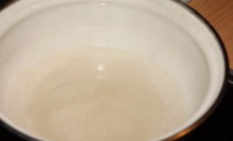 Для приготовления коржей нам необходимо приготовить миндальную пасту. Для этого первым делом готовим сахарный сироп. Сахар соединить с водой, проварить до растворения сахара.