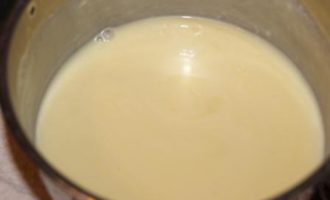 Сливки довести до кипения, добавить мед. Мешать до полного растворения меда.