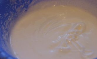 Белки взбить с 50 г. сахара до пиков.