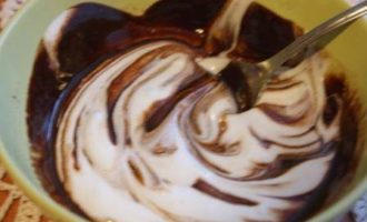 Шоколад растопить с сахаром и маслом, добавить ложку белков.