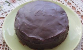 Таким образом поступаем со всеми коржами, на верхний корж выкладываем только шоколадный крем. Бока торта покрываем шоколадным кремом.