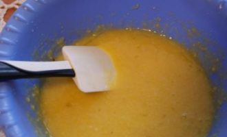 К миндальной пасте добавить 100 г. сахара, желтки и яйцо, тщательно перемешать.