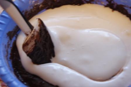 Добавить оставшиеся взбитые белки, аккуратно перемешать.