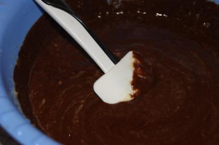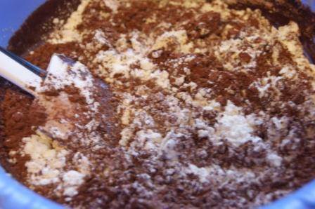 Добавить муку и какао.