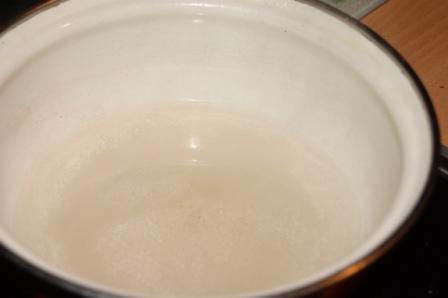 Для приготовления коржей нам необходимо приготовить миндальную пасту. Для этого первым делом готовим сахарный сироп. Сахар соединить с водой, проварить до растворения сахара.