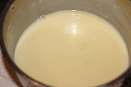 Сливки довести до кипения, добавить мед. Мешать до полного растворения меда.
