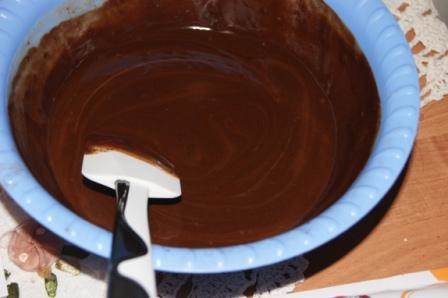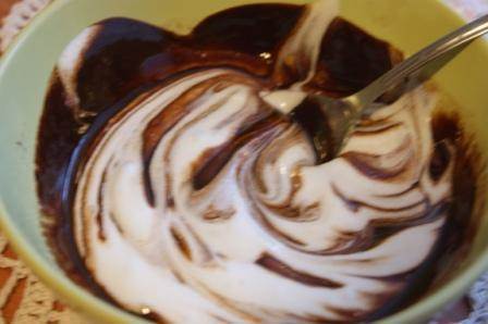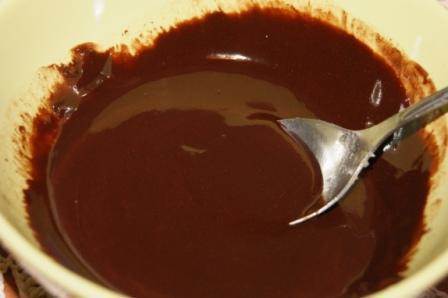 Шоколад растопить с сахаром и маслом, добавить ложку белков.