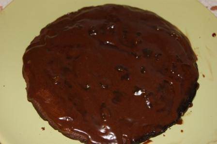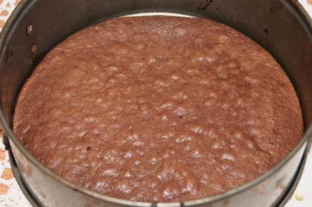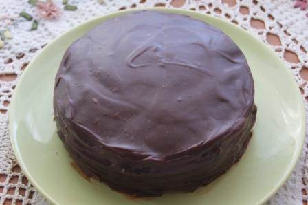 Таким образом поступаем со всеми коржами, на верхний корж выкладываем только шоколадный крем. Бока торта покрываем шоколадным кремом.