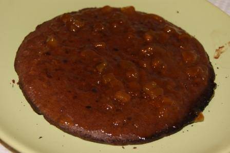 Собираем наш торт. На корж выкладываем часть абрикосового джема.
